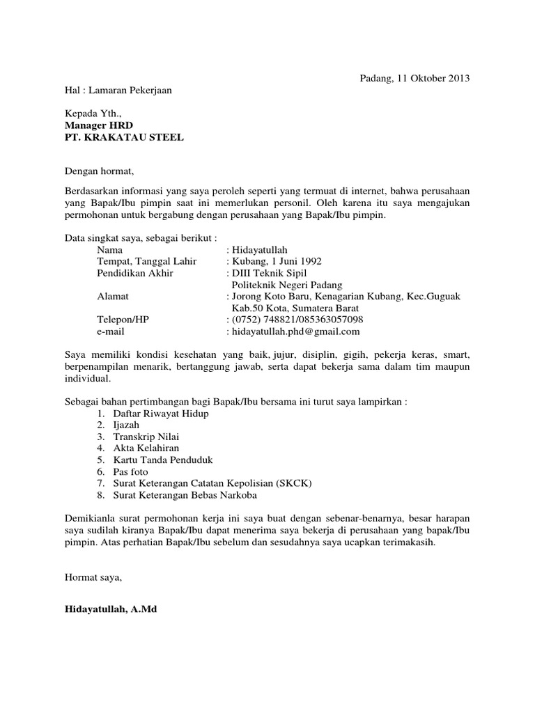 Apalagi jika mendapatkan pekerjaan di perusahaan bergensi dengan skala nasional atau international surat lamaran kerja. Yth hrd manager pt berkas jaya grup jl.
